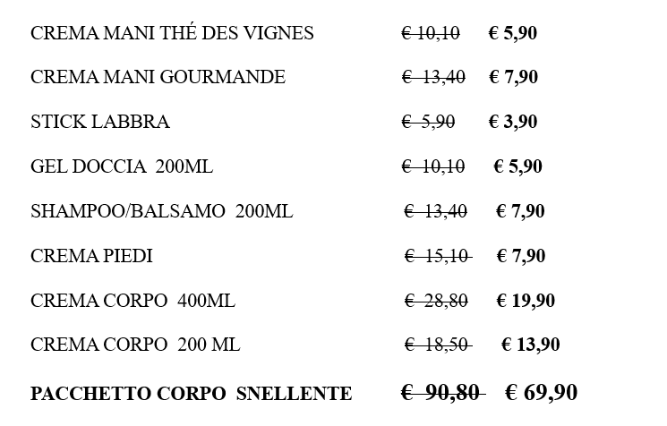 Lo staff propone offerte periodiche così che possiate acquistare il vostro articolo preferito a prezzo inferiore, oppure potete approfittare degli sconti per provare una nuova crema viso o un detergente.